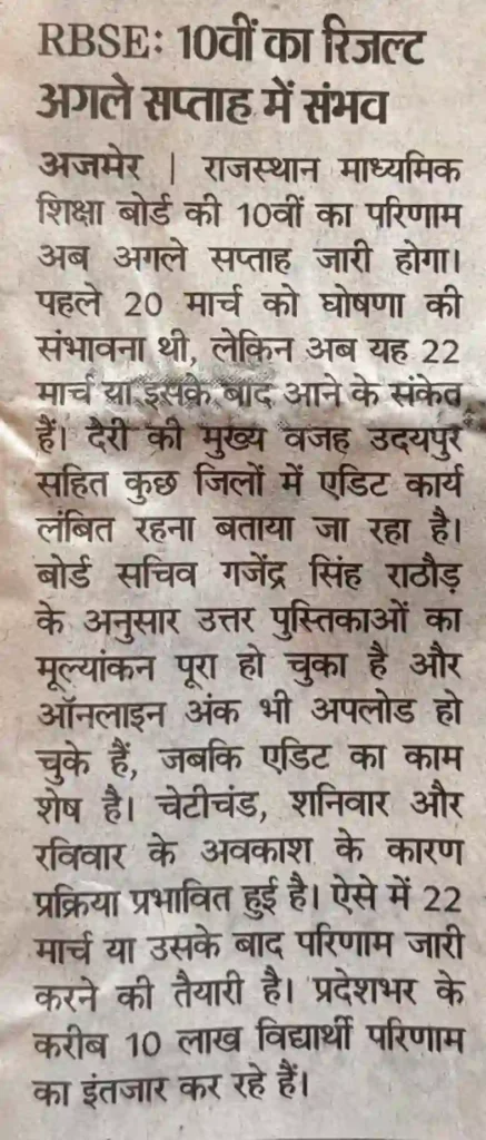 RBSE 10th Result 2026 exact कब आएगा?